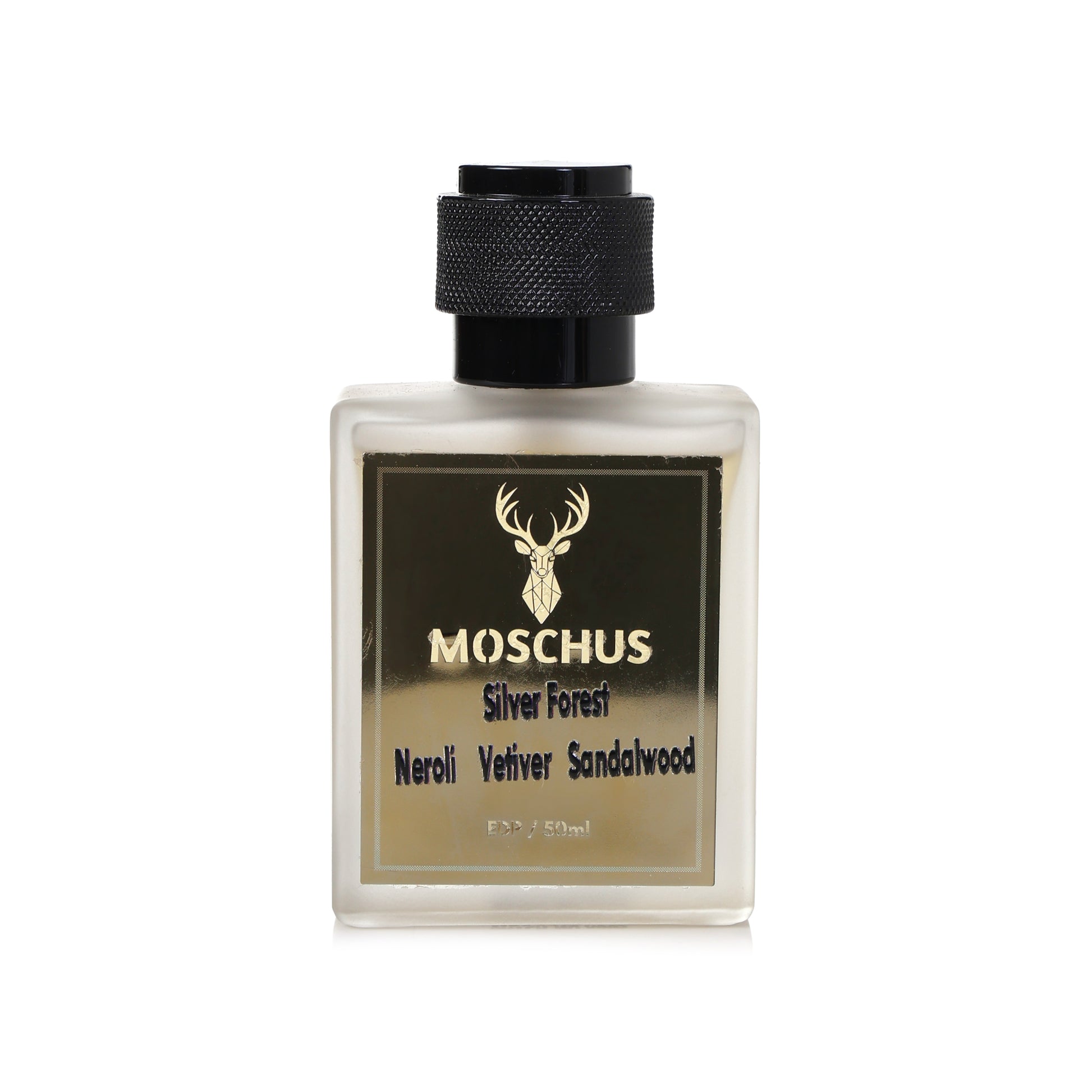 Experience the natural strength of MOSCHUS Silver Forest — a fragrance that blends confidence with calm sophistication.
